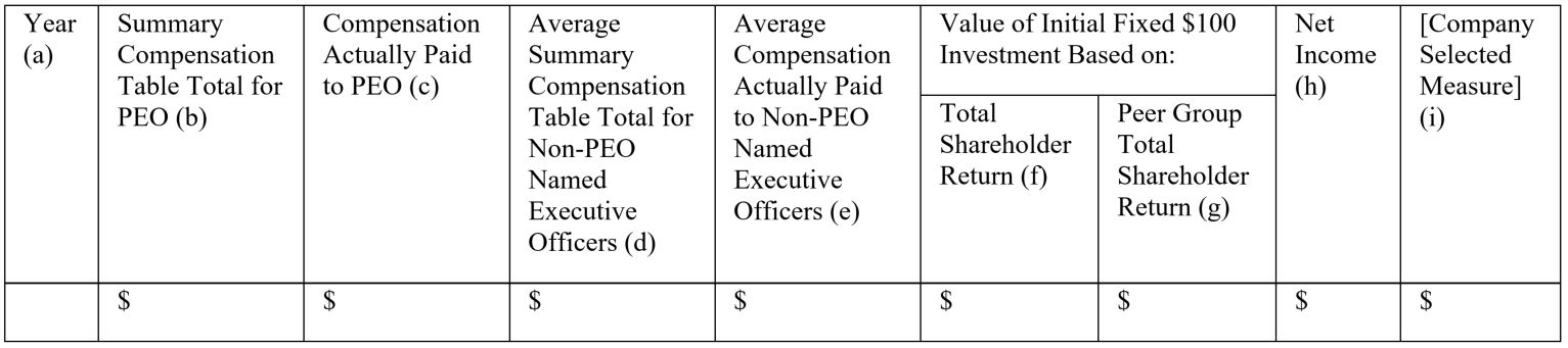 Pay Versus Performance Tabular Disclosure